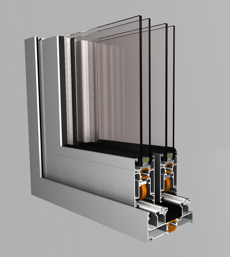 Θερμοδιακοπτόμενο συρόμενο/ανασυρόμενο σύστημα παραθύρων με συνολικό πλάτος όψης 122 mm.